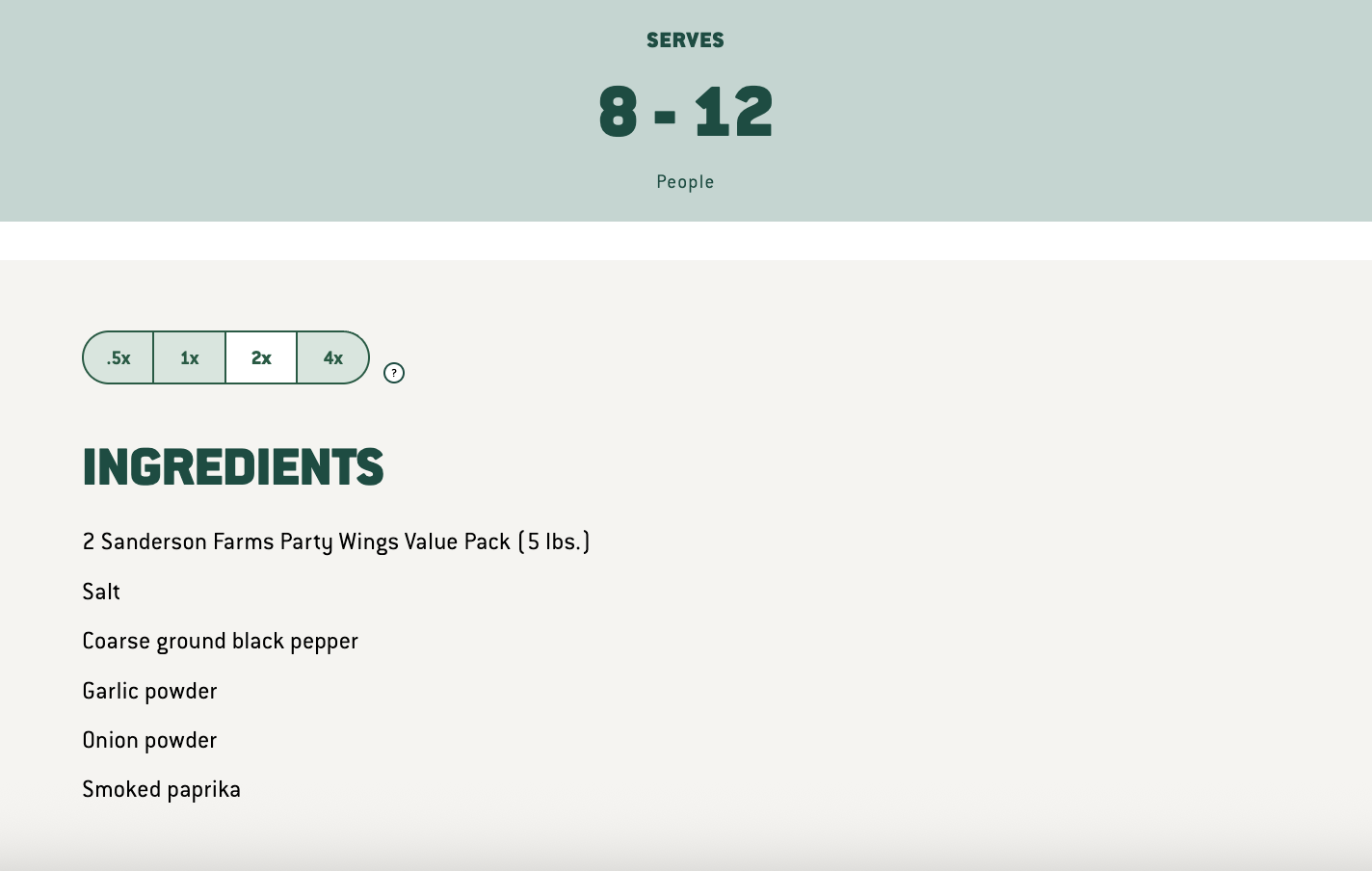 Planning for a large group? Our new recipe multiplier allows you to scale the ingredients to suit your needs without changing the step-by-step directions, conveniently found at the top of each recipe page. To use it, simply select .5x, 1x, 2x, 4x, depending on how you’d like to scale the recipe. If you want to go back to view the original measurements, simply select 1x. The ingredient amounts should automatically adjust, but the directions will remain the same.